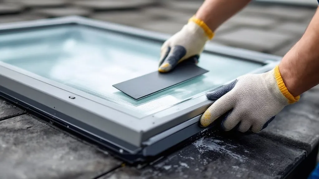 To fix this, you’ll need a good quality silicone sealant designed for roofing and skylights. Look for a UV-resistant product suitable for wet and dry conditions. Before applying the new sealant, completely remove the old, damaged sealant with a scraper or utility knife.