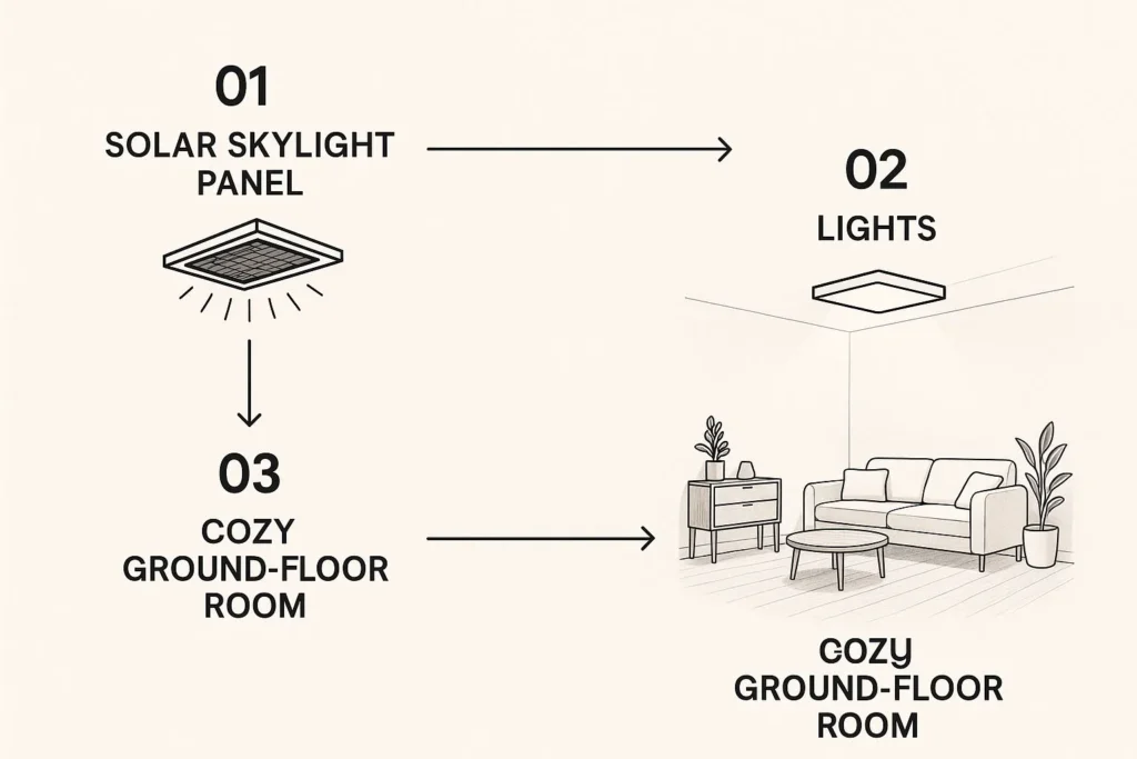 This is a really important point. Unlike big solar setups that store energy in batteries for later, this system is direct. No batteries to maintain, no complex storage to worry about. It’s a clean, simple line from the sun to your ceiling.