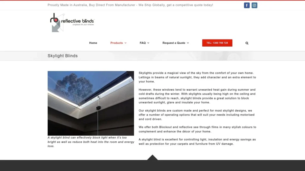 For homeowners seeking an economical yet effective way to manage heat and glare, Reflective Blinds offers a specialised range of custom-made skylight solutions. This platform focuses on providing practical light and heat control through innovative materials, including both blockout fabrics and unique reflective see-through films. Their direct-to-consumer model, with nationwide shipping across Australia, makes them a highly accessible choice for controlling unwanted sunlight and protecting interior furnishings from harsh UV rays.
