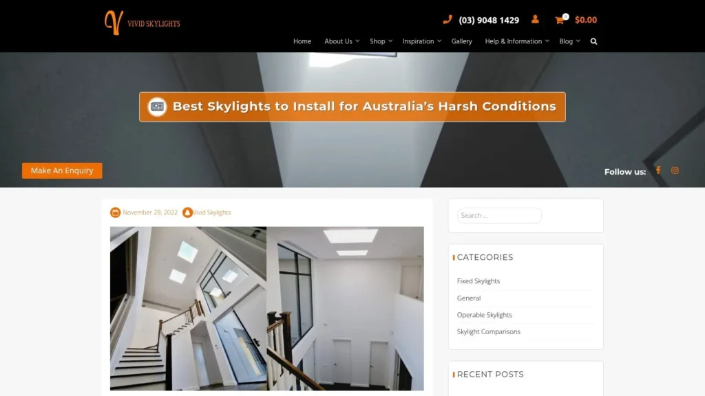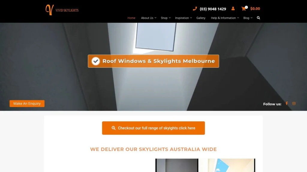 The website is straightforward and product-focused. You can easily browse their core range of fixed skylights, which are clearly presented with specifications, pricing, and benefits. The platform is designed to guide you from product selection directly to organising a professional installation, streamlining the entire process. Their team provides installation services across all of Melbourne and the Mornington Peninsula, offering a localised, end-to-end service.