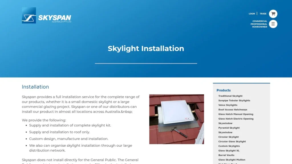 Skyspan is a prominent Australian manufacturer offering an extensive catalogue of skylight products, with a strong emphasis on customisation and energy efficiency. While they don’t offer installation services directly to the public, their platform is a critical resource for connecting with authorised distributors who can manage the entire supply and installation process. This makes their website an important stop when your search for skylights installers near me requires a solution tailored to unique architectural needs.