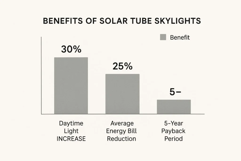 The infographic below really drives home some of the data-backed benefits that make solar tubes such a compelling choice for homeowners focused on efficiency.