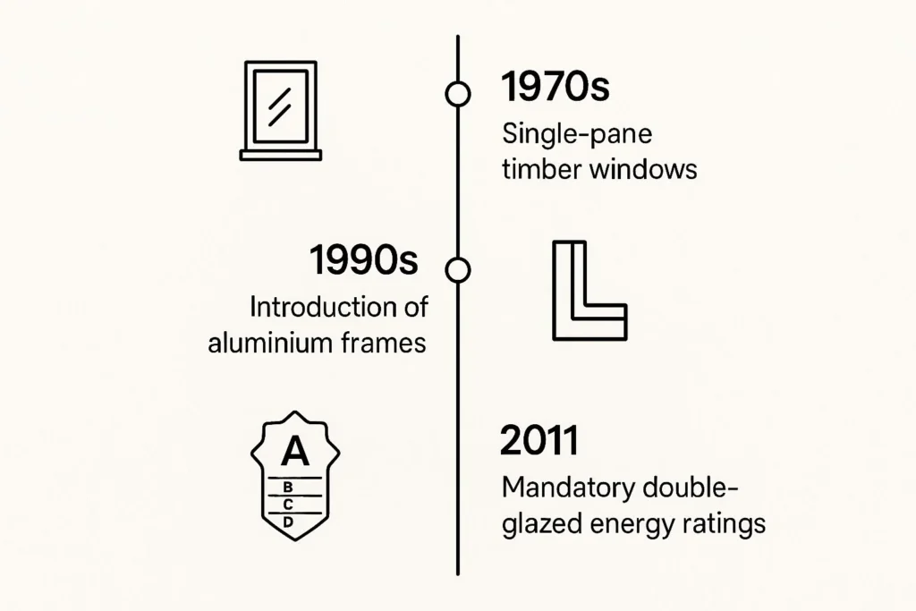Window technology in Australia has changed dramatically since the mid-20th century. Back in the 1950s and 60s, homes were built with single-glazed timber frames that offered next to no insulation. These early windows were a massive source of heat loss, pushing up energy bills, especially in the colder months.
